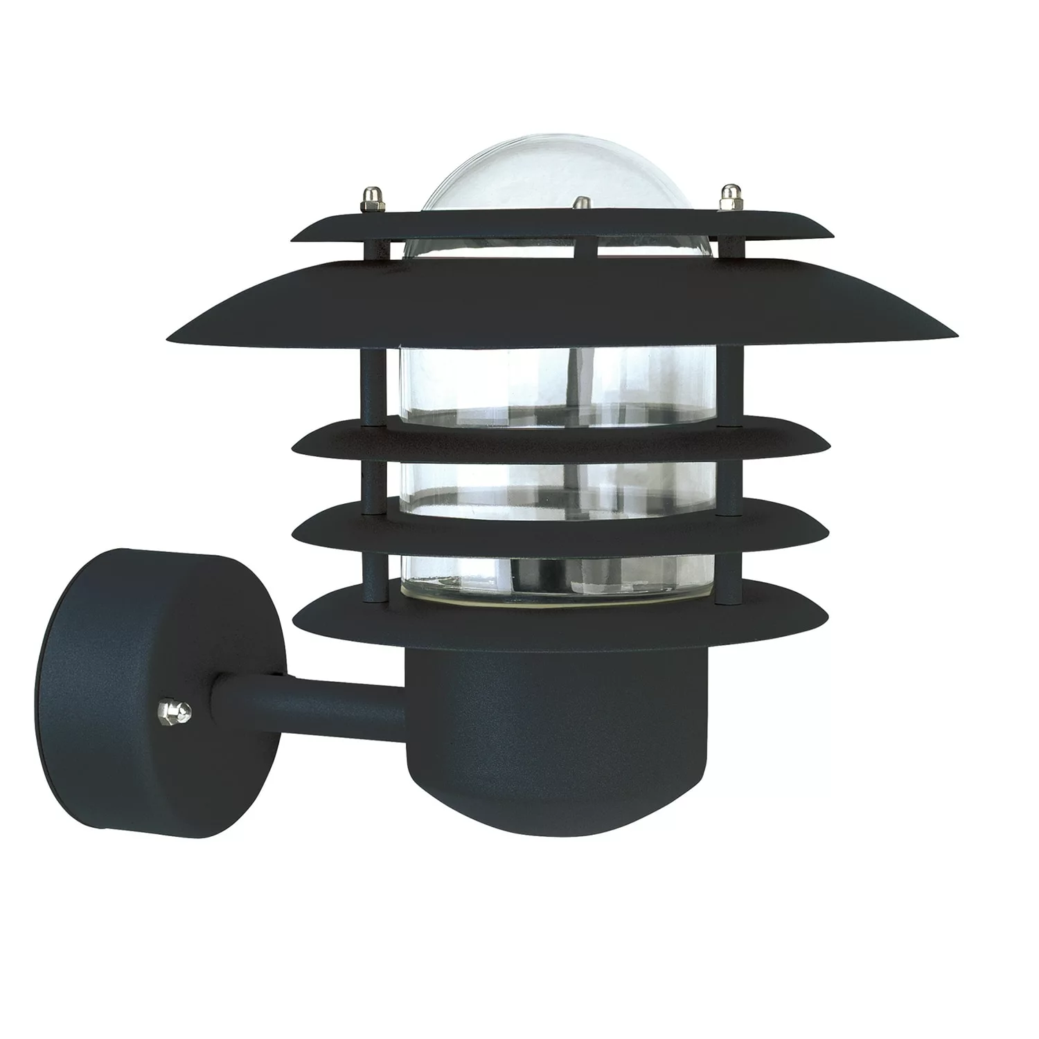 Max is a Swedish manufactured wall lamp for outdoor use from Belid. The light source and the glass dome are surrounded by two metal rings that give a beautiful light image. The lamp is available in three different colors.