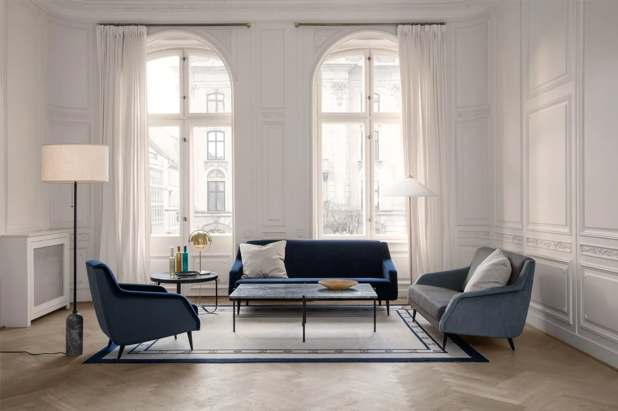 – Combineer de tafellamp met een vloerlamp van GUBI.
