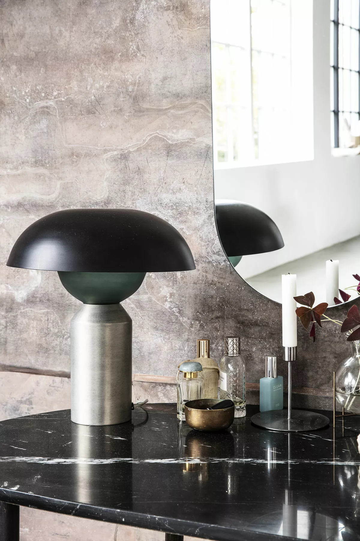 Little Fellow is a table lamp with geometric shapes and a futuristic style. The lamp from House Doctor is made of iron and glass and will be a unique interior decor on the desk, bedside table or in the living room. The stylish lamp has a silver colour with blue shades.