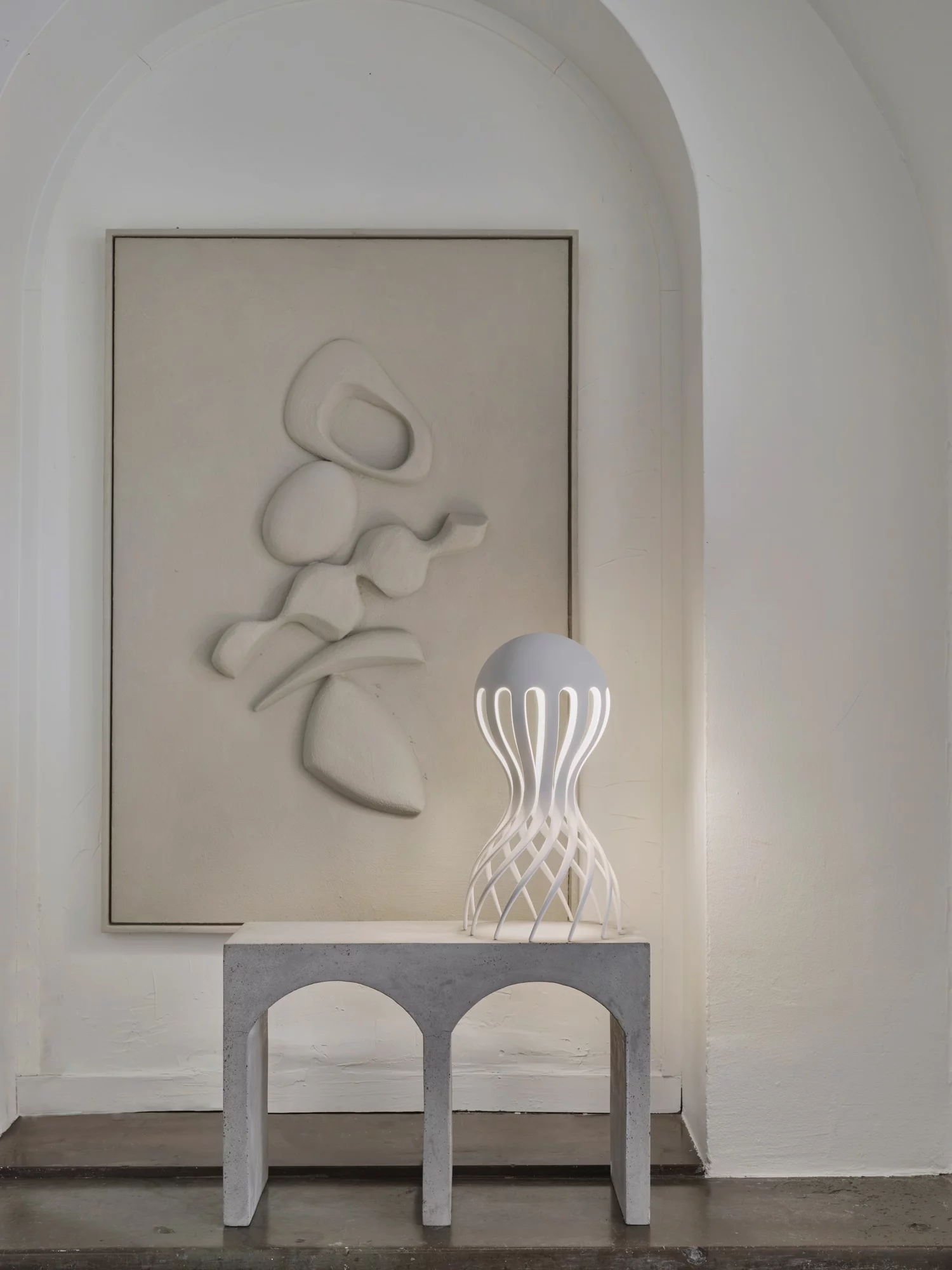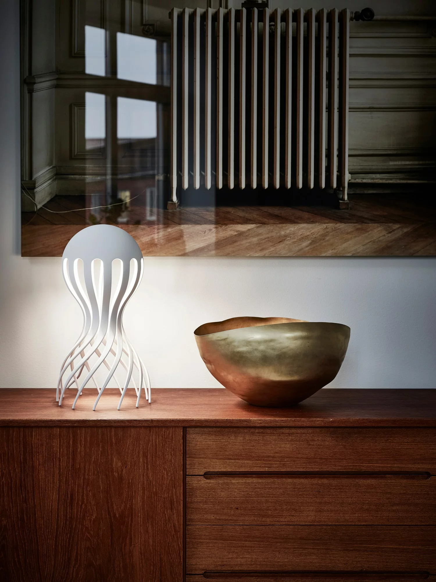 Cirrata pushes the design boundaries without sacrificing anything. The eccentric octopus-like body made out of aluminum gives an interesting shadow play and is unique in its kind. Cirrata Table Lamp took almost six years from idea to finished product and was the first lamp Oblure launched in collaboration with Markus Johansson back in 2016. Markus love and strong belief that the lamp would be a success kept the development going. Cirrata is now a well known table lamp worldwide. Cirrata is molded in aluminum and sand painted. Available in gray or white.