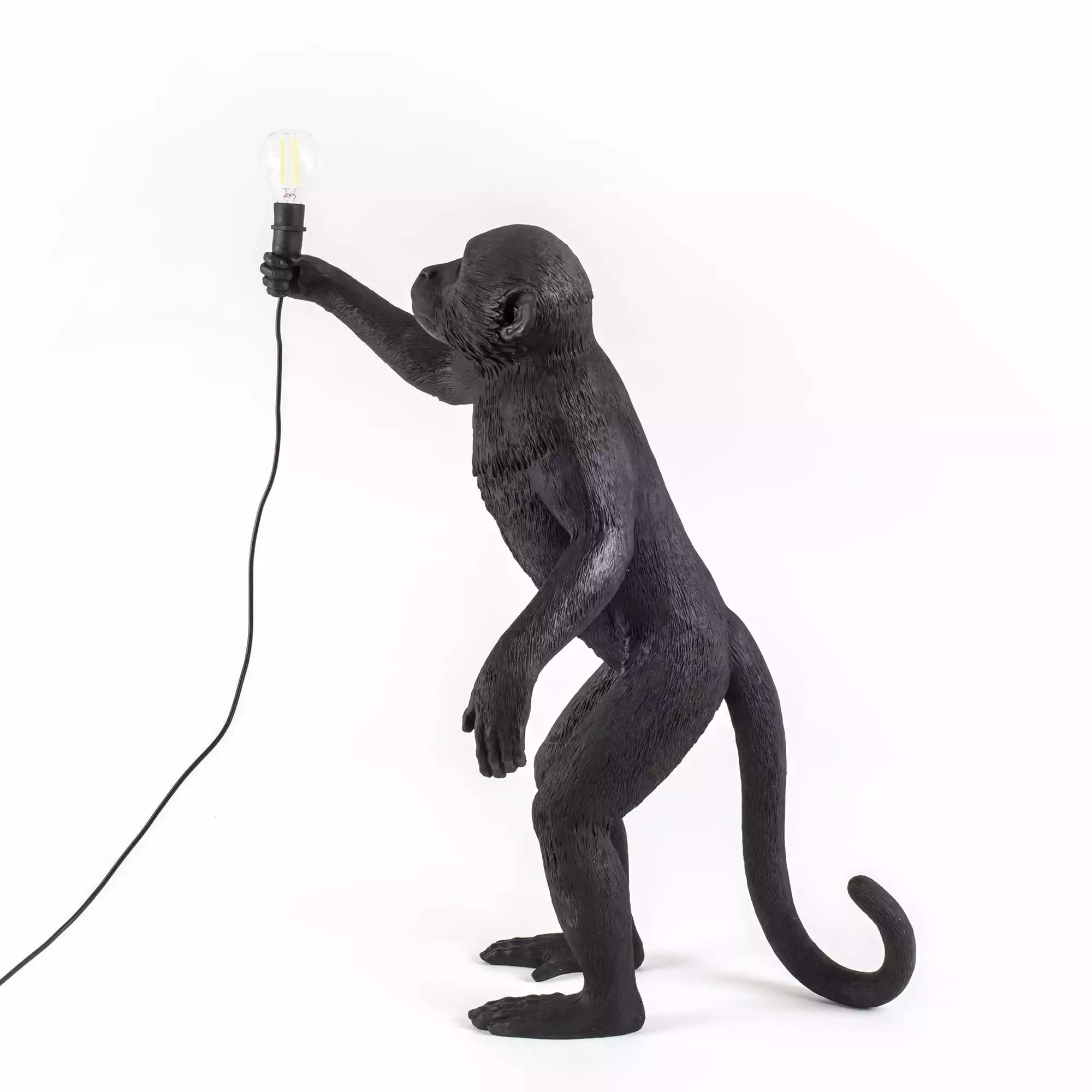 Monkey Lamp van Seletti, ontworpen door Marcantonio Raimondi Malerba. De inspiratie komt van spelletjes uit de kindertijd, een ontmoeting tussen mens en natuur. Een andere lamp van een aap die een gloeilamp in verschillende posities vasthoudt. De decoratieve lichtbron is op alle modellen verstelbaar – hij kan in de palm van de hand op de aap worden geplaatst of hangend naar beneden. De lamp is een leuk decoratiedetail dat ieders aandacht trekt. Gemaakt van hars dat lijkt op porselein waardoor de lamp geschikt is voor elke kamer in huis.