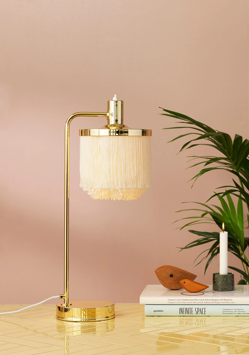 Fringe table lamp from Warm Nordic has an elegant design that was made back in the 1960s by the lighting genius, Hans-Agne Jakobsson. The Fringe series is an addition from Warm Nordic’s autumn collection 2018, and its exclusive and seductive style has been specially designed as a tribute to Nordic design. The table lamp Fringe has a construction of solid polished brass with a rich skirt of tactile fringes that gently surround the light source, creating a warm and comfortable lighting in the room. The Fringe series was originally christened “Frans” (the Swedish for “fringe”) and is as beloved now as then by becoming a design icon with exclusive materials and a simplified design that fits into all rooms. Place it near the sofa, next to the bed or why not on the desk. Fringe is available in two different colours – cream white or pale pink.